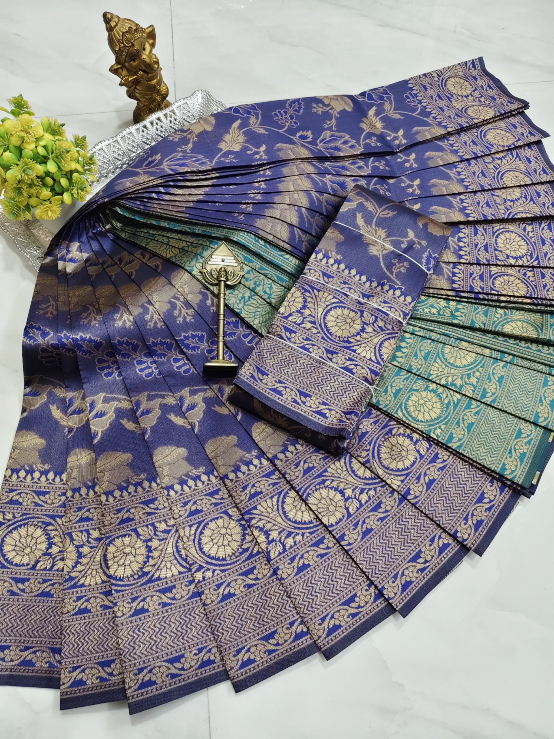 😉Rich pallu with contrast blouse.